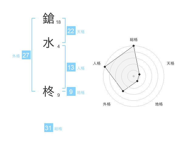 鎗水 柊さんの総格は31画の5点!