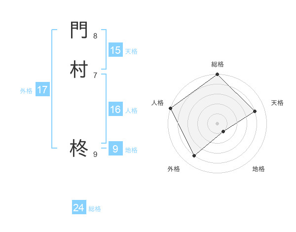 門村 柊さんの総格は24画の5点!