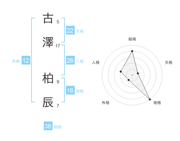 古澤 柏辰さんの総格は38画の4点!