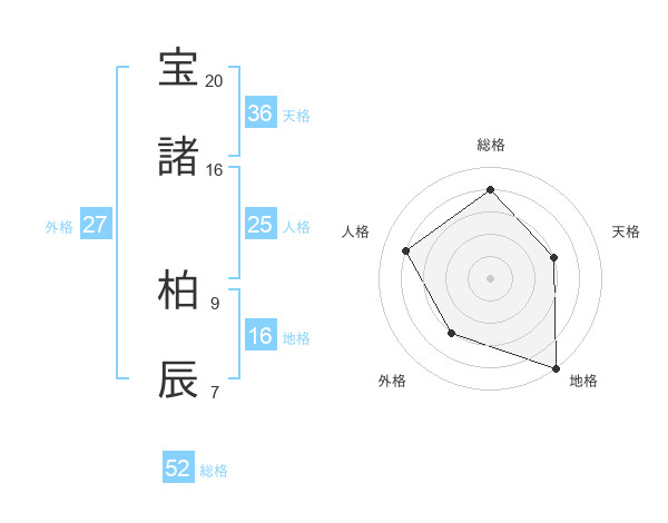 宝諸 柏辰さんの総格は52画の4点!