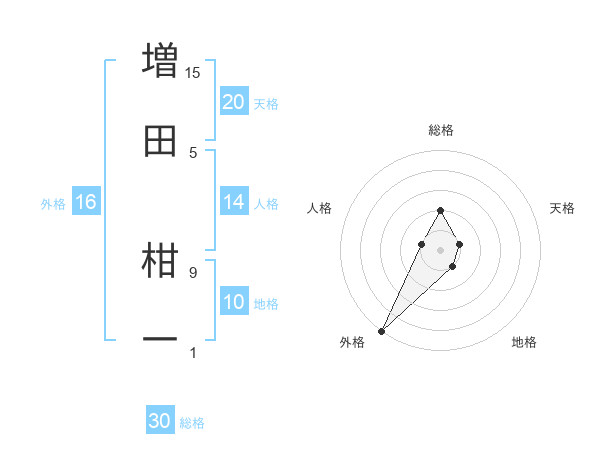 増田 柑一さんの外格は16画の5点!