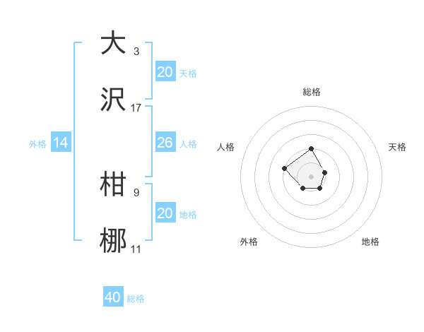 大沢 柑梛さんの総格は40画の2点!