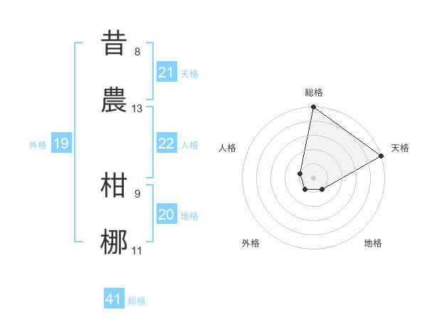 昔農 柑梛さんの総格は41画の5点!