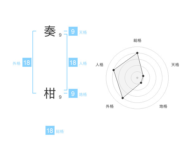 奏 柑さんの総格は18画の4点!