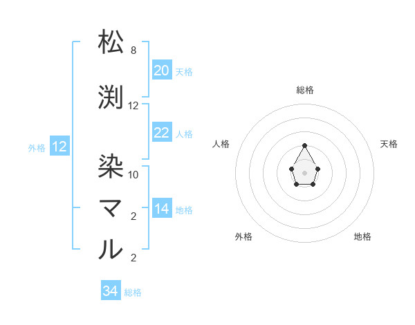 松渕 染マルさんを姓名の画数から五運を鑑定