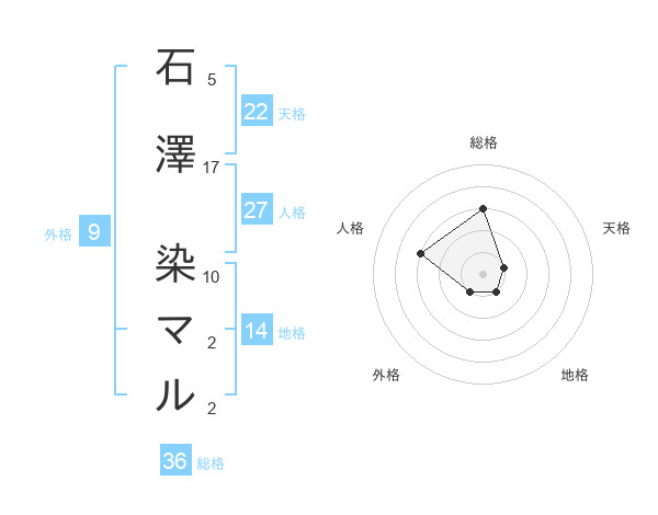 石澤 染マルさんを姓名の画数から五運を鑑定