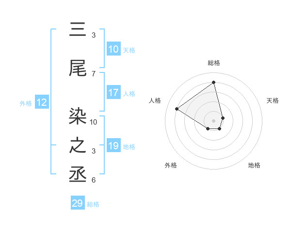 三尾 染之丞さんを姓名の画数から五運を鑑定