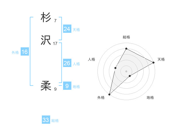 杉沢 柔さんの総格は33画の4点!