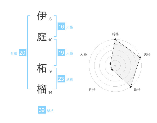 伊庭 柘榴さんを姓名の画数から五運を鑑定