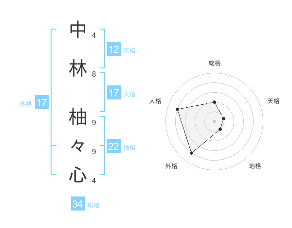 中林 柚々心さんの人格は17画の4点!