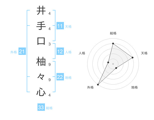 井手口 柚々心さんの外格は21画の5点!
