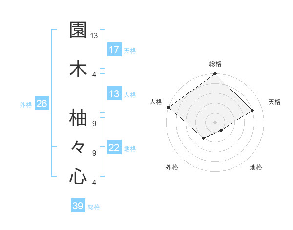 園木 柚々心さんを姓名の画数から五運を鑑定