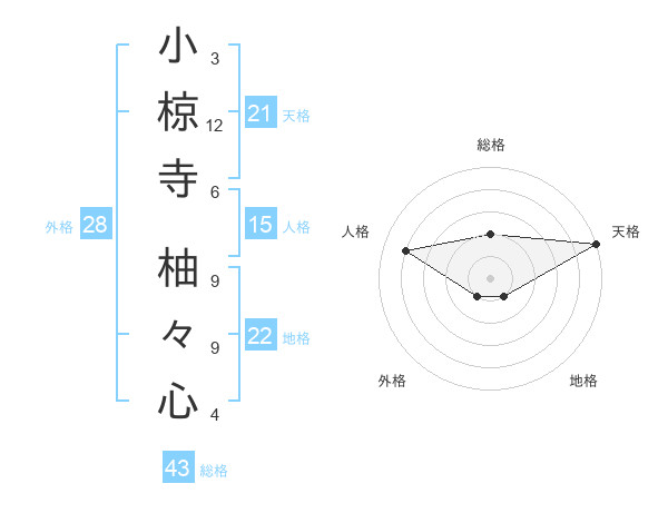 小椋寺 柚々心さんの天格は21画の5点!