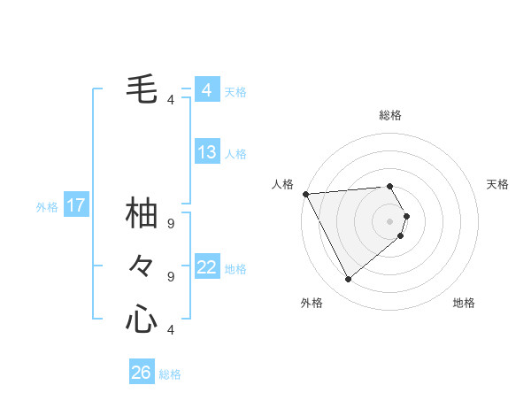 毛 柚々心さんを姓名の画数から五運を鑑定