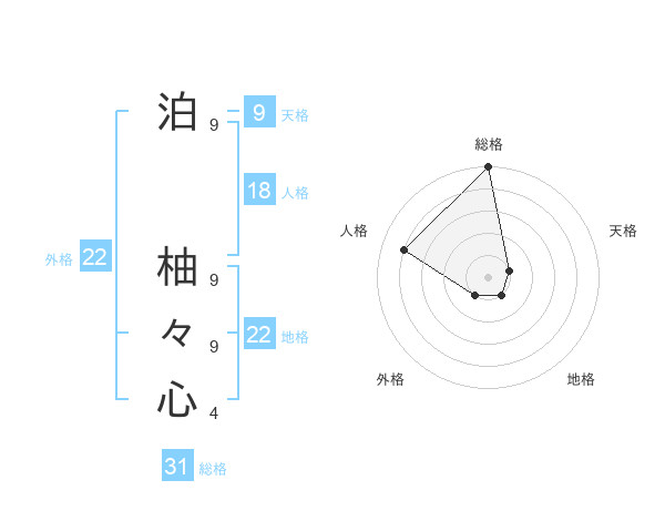 泊 柚々心さんを姓名の画数から五運を鑑定