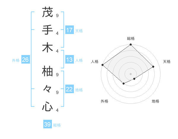 茂手木 柚々心さんを姓名の画数から五運を鑑定