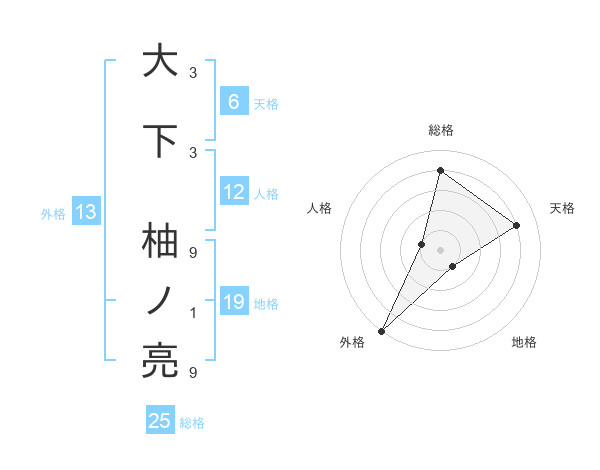 大下 柚ノ亮さんを姓名の画数から五運を鑑定