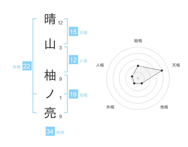 晴山 柚ノ亮さんの総格は34画の2点!