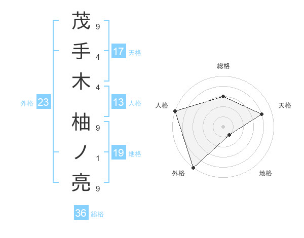 茂手木 柚ノ亮さんの外格は23画の5点!