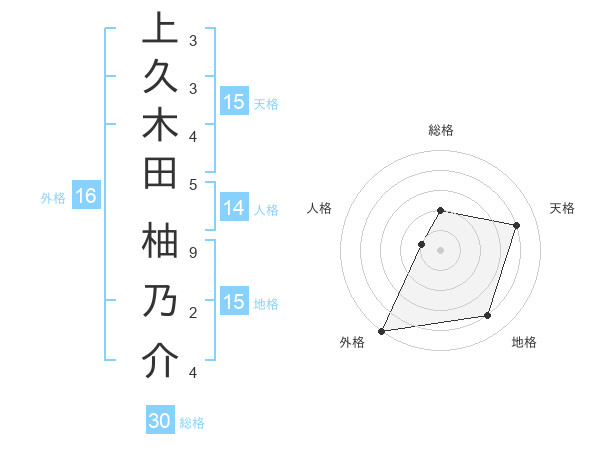 上久木田 柚乃介さんの外格は16画の5点