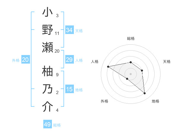 小野瀬 柚乃介さんを姓名の画数から五運を鑑定