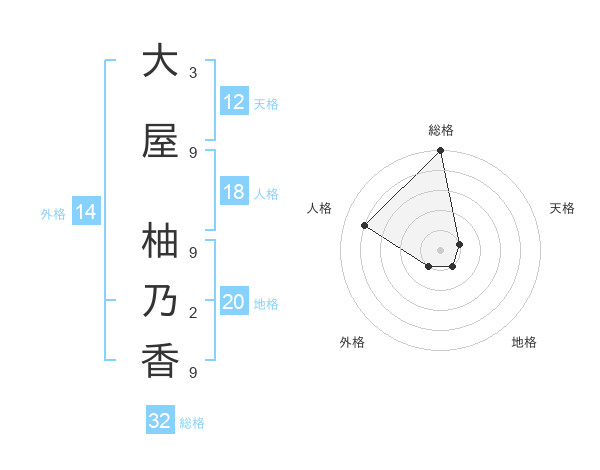 大屋 柚乃香さんの総格は32画の5点