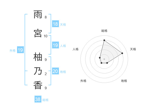 雨宮 柚乃香さんの総格は38画の4点!
