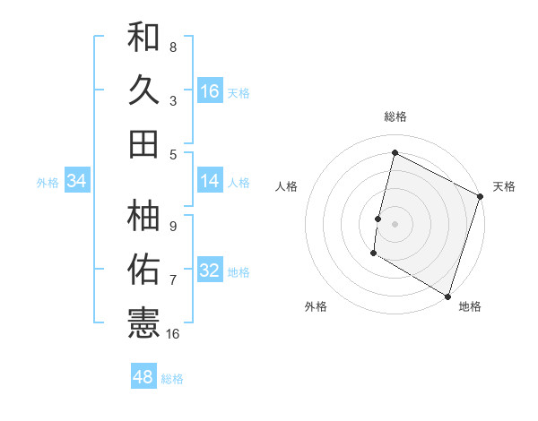 和久田 柚佑憲さんを姓名の画数から五運を鑑定