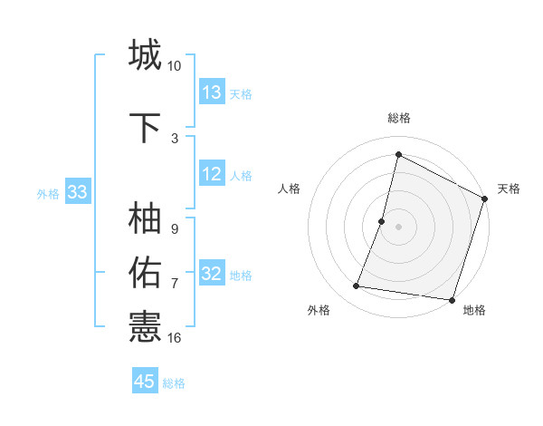 城下 柚佑憲さんを姓名の画数から五運を鑑定