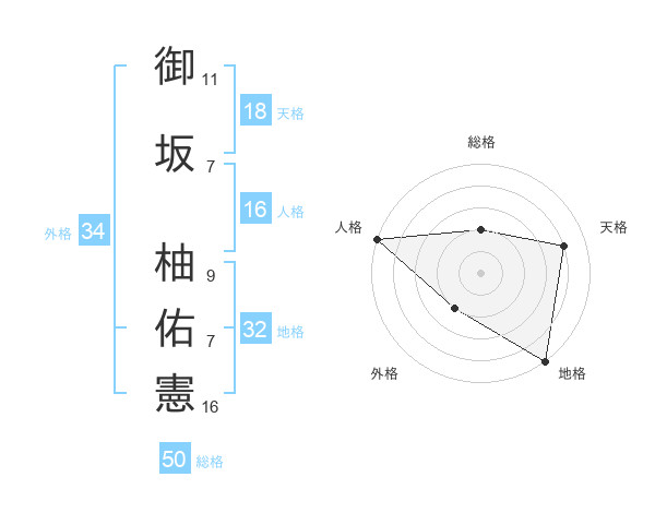 御坂 柚佑憲さんを姓名の画数から五運を鑑定