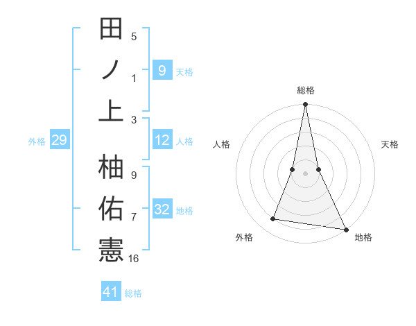 田ノ上 柚佑憲さんの総格は41画の5点