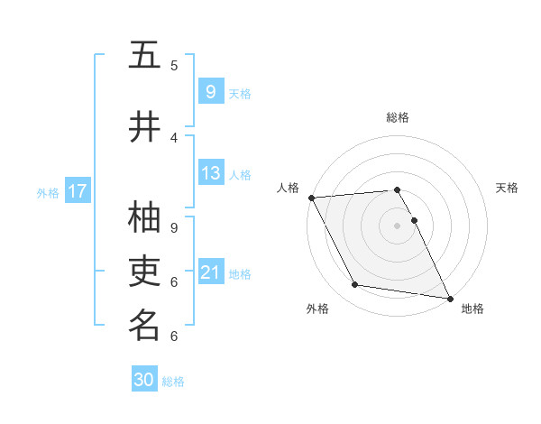 五井 柚吏名さんを姓名の画数から五運を鑑定