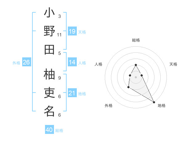 小野田 柚吏名さんの外格は26画の2点!
