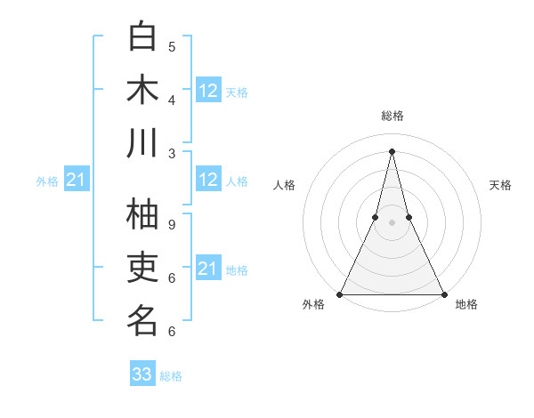 白木川 柚吏名さんの外格は21画の5点!