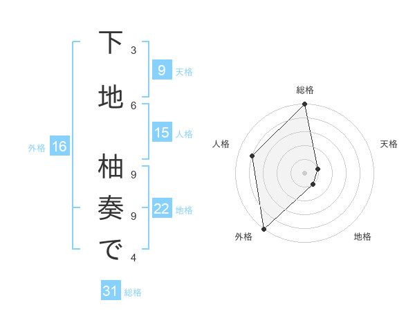 下地 柚奏でさんを姓名の画数から五運を鑑定
