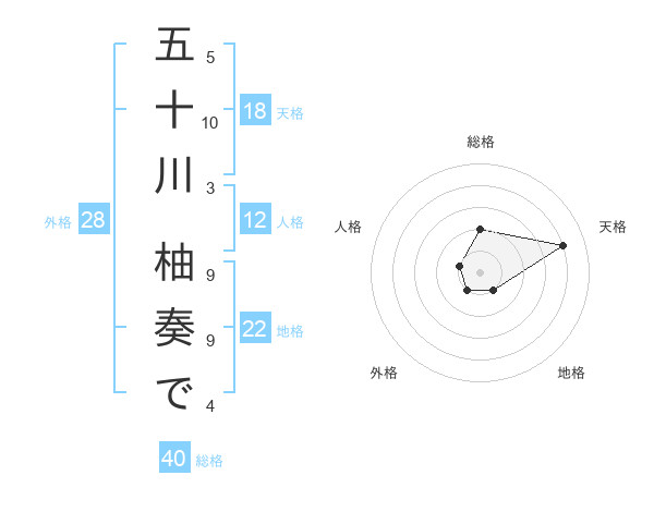 五十川 柚奏でさんの総格は40画の2点!