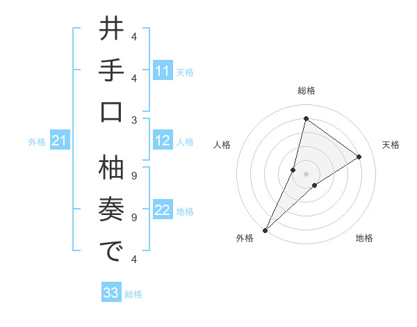井手口 柚奏でさんの総格は33画の4点!