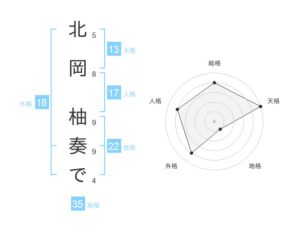 北岡 柚奏でさんを姓名の画数から五運を鑑定