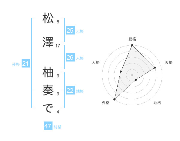 松澤 柚奏でさんを姓名の画数から五運を鑑定