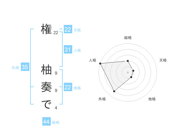 権 柚奏でさんの総格は44画の2点!