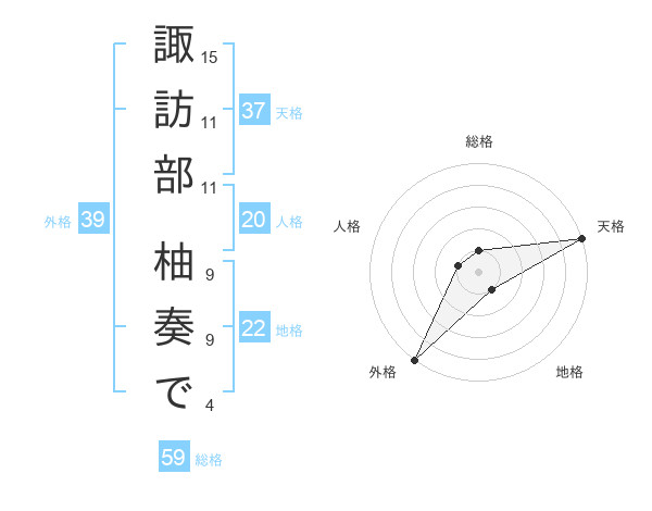 諏訪部 柚奏でさんの外格は39画の5点!