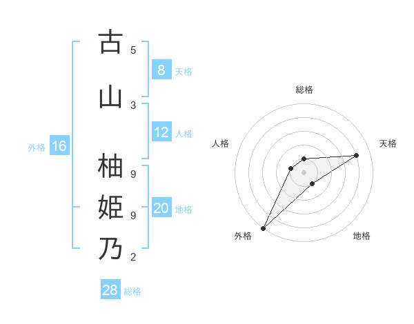 古山 柚姫乃さんを姓名の画数から五運を鑑定