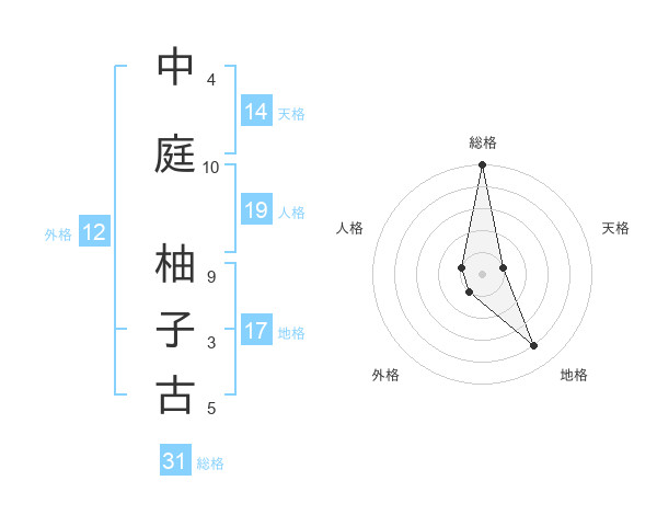 中庭 柚子古さんの総格は31画の5点!