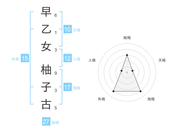 早乙女 柚子古さんを姓名の画数から五運を鑑定