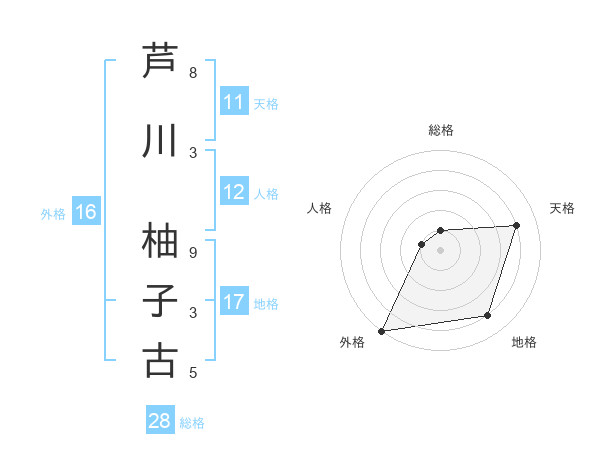 芦川 柚子古さんの総格は28画の1点!