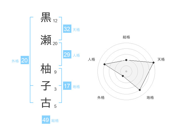 黒瀬 柚子古さんを姓名の画数から五運を鑑定