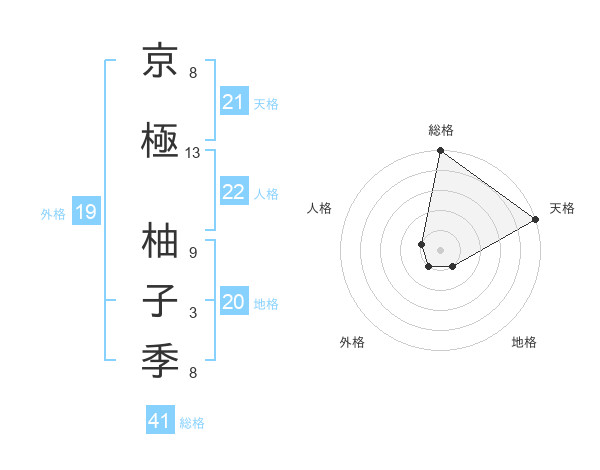 京極 柚子季さんの総格は41画の5点!