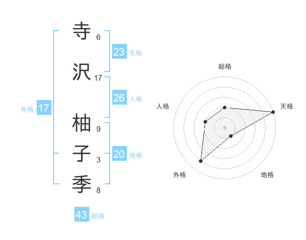 寺沢 柚子季さんを姓名の画数から五運を鑑定