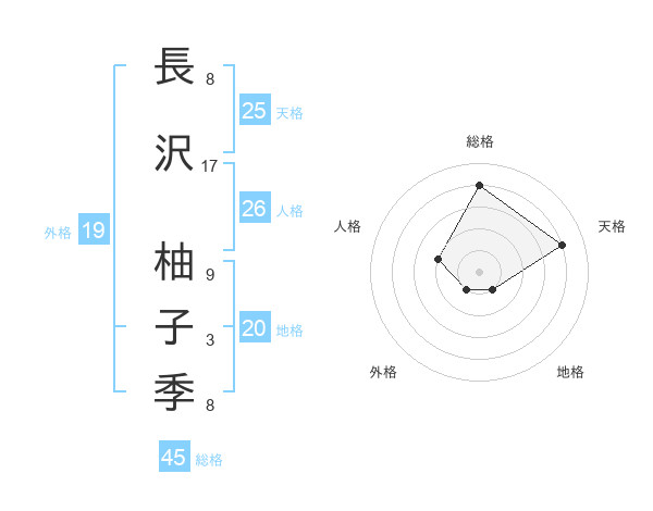 長沢 柚子季さんを姓名の画数から五運を鑑定