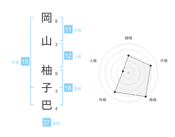 岡山 柚子巴さんを姓名の画数から五運を鑑定